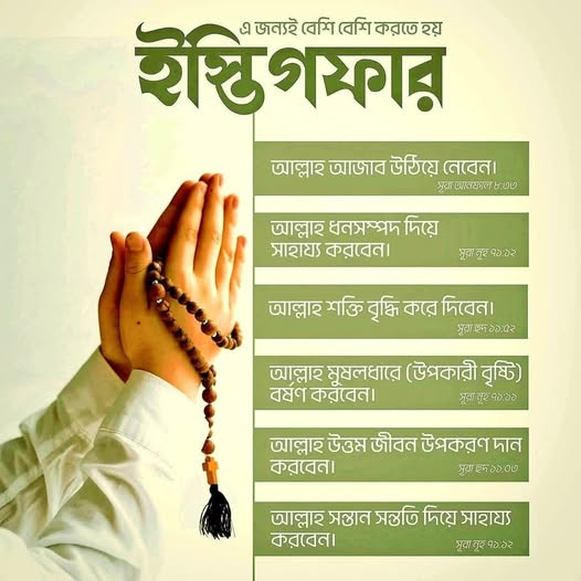 তাই —আজ থেকেই শুরু হোক ইস্তিগফারের ধারাবাহিকতা। অন্তরের গভীরতা থেকে বারবার বলুন: “আস্তাগফিরুল্লাহ”