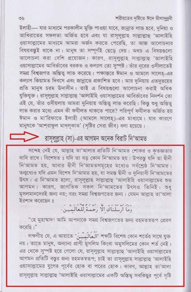 কিন্তু বড়োই পরিতাপের বিষয় হলো সেই ওহাবী মাজহাবের লোকজন ঈদ-এ-মিলাদুন্নবী সাল্লাল্লাহু আলাইহে ওয়াসাল্লাম এর বিপক্ষে কথা বলে। আমি বইয়ের ছবি সহ এখানে দিলাম।