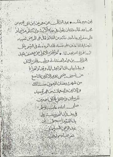 “Yeh Abdur Razzaq ki rawyat hay jisy unhoun nain apni Sanad say rawayat kiya hay.”
