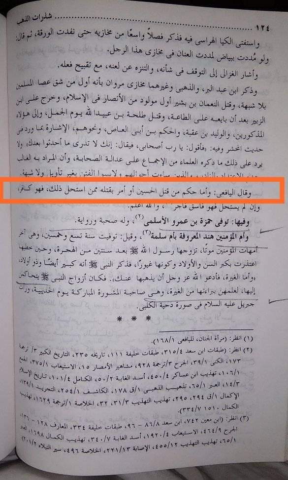 আর যারা ইমাম হুসাইন আলাইহিস সালাম উনাকে শহীদ করেছে, শহীদ করতে আদেশ করেছে তাদের ব্যাপারে ইমাম ইয়াফেয়ী রহমতুল্লাহি আলাইহি বলেন,